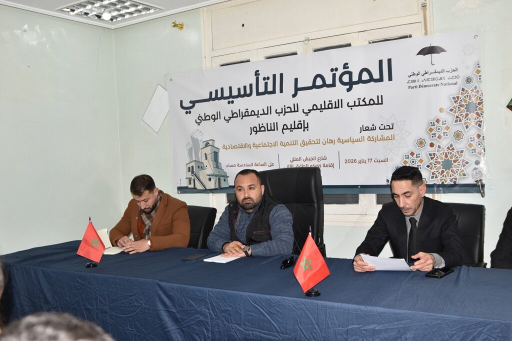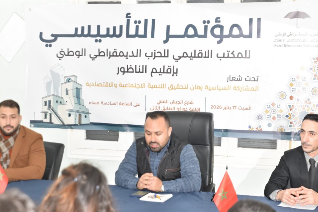 شهدت مدينة الناظور، مساء السبت 17 يناير 2026، تنظيم المؤتمر التأسيسي للمكتب الإقليمي للحزب الديمقراطي الوطني، المنعقد تحت شعار «المشاركة السياسية رهان لتحقيق التنمية الاجتماعية والاقتصادية»، بحضور عدد من الفاعلين السياسيين والجمعويين ووجوه شبابية، في خطوة تروم تقوية العمل الحزبي على المستوى الإقليمي.