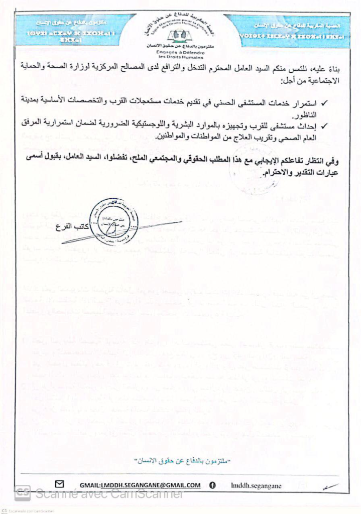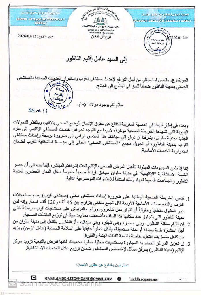 العصبة المغربية للدفاع عن حقوق الإنسان تراسل عامل إقليم الناظور للمطالبة بإحداث مستشفى للقرب بالمدينة