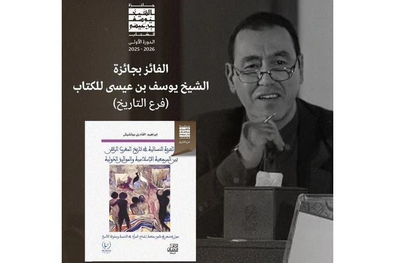 حاز المؤرخ المغربي إبراهيم القادري بوتشيش على جائزة الشيخ يوسف بن عيسى للكتاب في دورتها الأولى (2025–2026)، ضمن فرع الدراسات التاريخية، عن مؤلفه الذي يناقش قضية حرية المرأة في المغرب المعاصر من زاوية تجمع بين المرجعية الإسلامية و المواثيق الدولية.