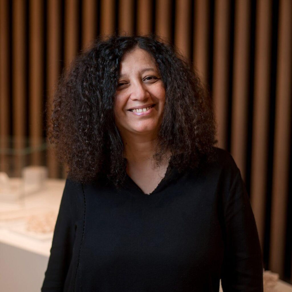 تستمد أمينة أكزني، المقيمة في مراكش، إلهامها الأساسي من تكوينها الأكاديمي في العمارة، وقد طورت مسيرتها الفنية على مدى أكثر من عشرين عاماً من خلال ورش عمل وإقامات فنية ومشاريع ميدانية مع المجتمعات المحلية.