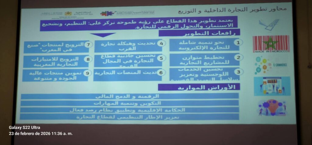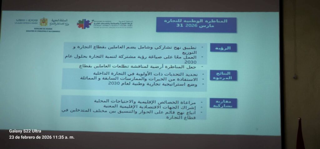 الناظور – احتضنت غرفة التجارة والصناعة والخدمات بالناظور يوم 23 فبراير 2026، لقاءً تشاورياً خصص لمناقشة تطوير التجارة الداخلية والتوزيع في أفق 2030، بحضور عدد من المستثمرين والفاعلين الاقتصاديين بالجهة الشرقية.
