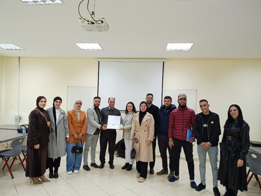 اختتم اللقاء بتسليم شهادة تقديرية للأستاذ المصطفى قريشي تقديراً لمساهماته العلمية في مجال القانون الرقمي وحقوق الإنسان.