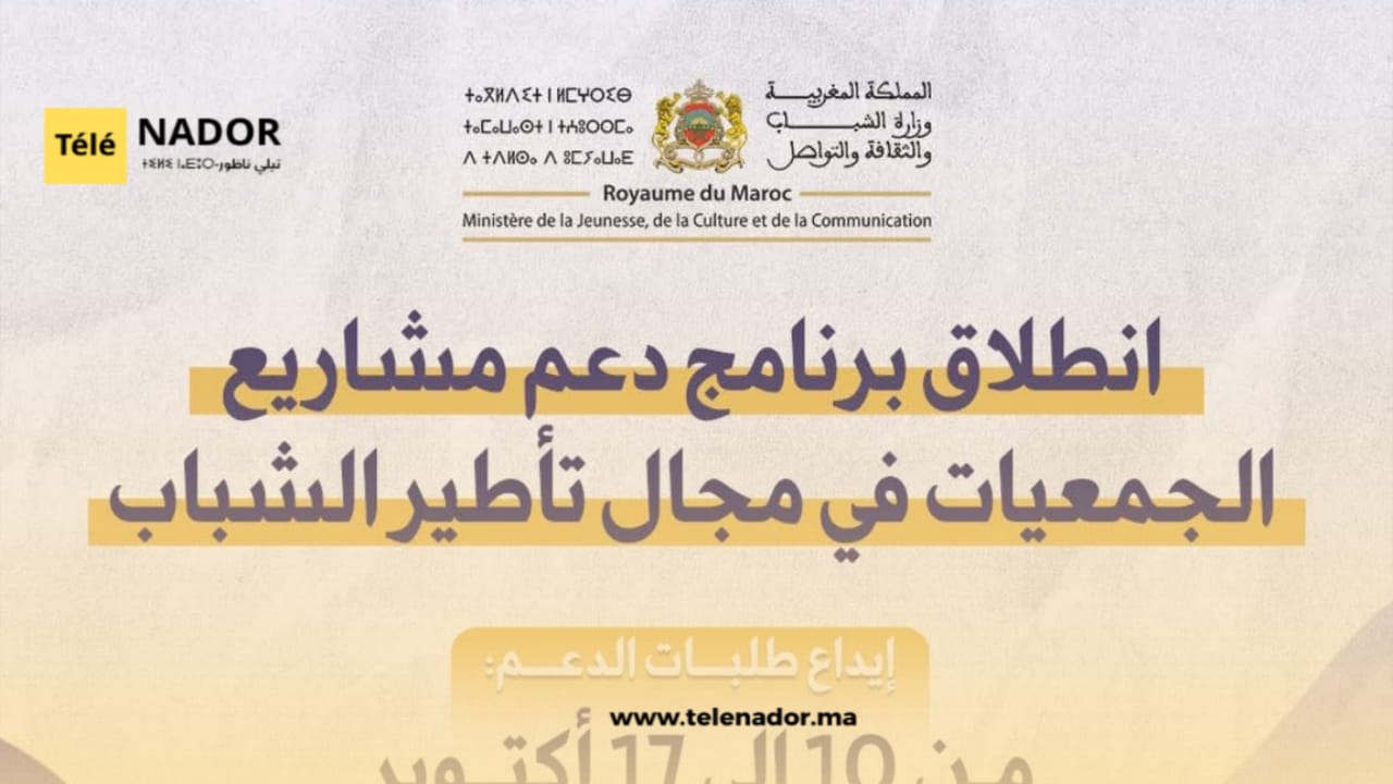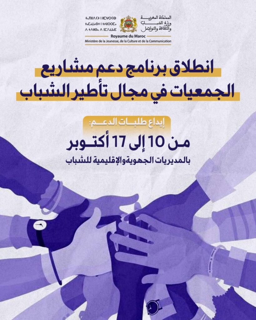 أعلنت وزارة الشباب عن إطلاق برنامج جديد يهدف إلى دعم مشاريع الجمعيات في مجال تأطير الشباب، بهدف تعزيز المبادرات المجتمعية و تمكين الشباب من الانخراط في أنشطة ثقافية و رياضية و اجتماعية.
