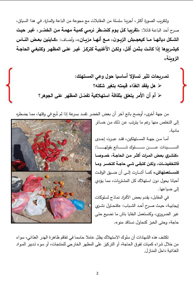 أما من جانب المستهلكين، فقد برزت سلوكيات مرتبطة بشراء كميات تفوق الحاجة، خصوصًا خلال التخفيضات، ما يؤدي إلى ضياع جزء منها، مقابل نماذج إيجابية تحرص على ترشيد الاستهلاك واستغلال البقايا.