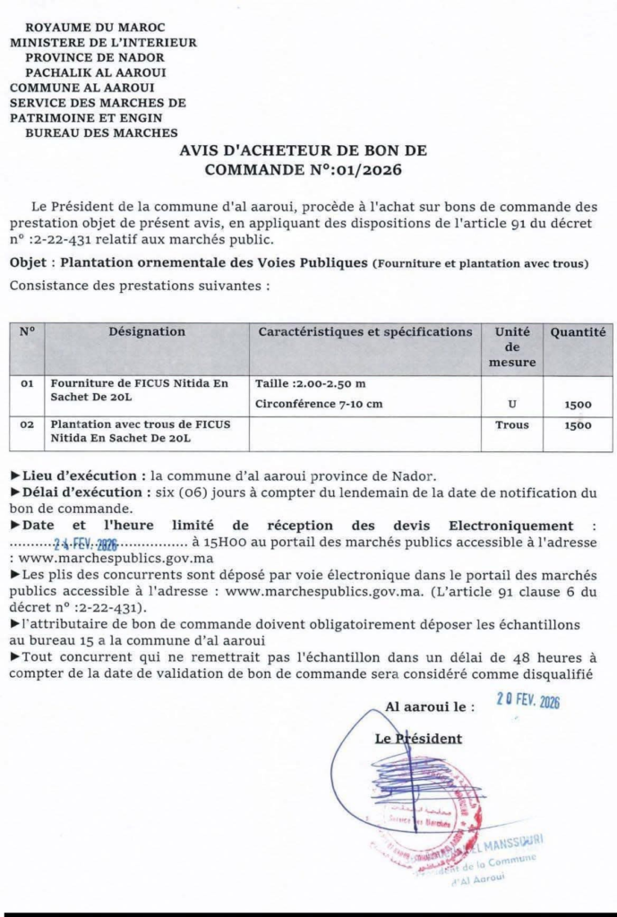 أطلقت جماعة العروي مبادرة بيئية هامة تهدف إلى غرس 1500 شجرة من نوع Ficus Nitida في مناطق مختلفة من الجماعة، في خطوة تهدف إلى تعزيز المساحات الخضراء وتحسين جودة البيئة المحلية.