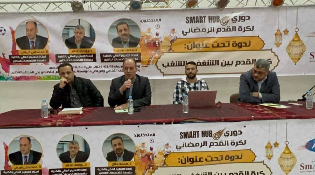 تحت عنوان “كرة القدم بين الشغف والشغب”، استضافت الندوة الفكرية الافتتاحية ثلة من الأساتذة في الكلية المتعددة التخصصات بسلوان، وهم الدكاترة يوسف عنتر ومحمد أملاح ومصطفى القريشي.