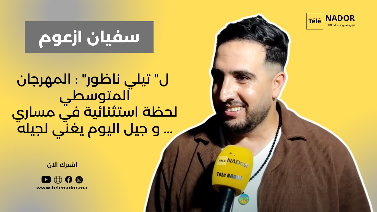 سفيان أزعوم لـ” تيلي ناظور” : المهرجان المتوسطي لحظة استثنائية في مساري … و جيل اليوم يغني لجيله