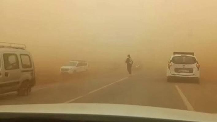 عواصف رملية قوية تشل حركة السير بين جرسيف وصاكة وتتسبب في حوادث طرقية
