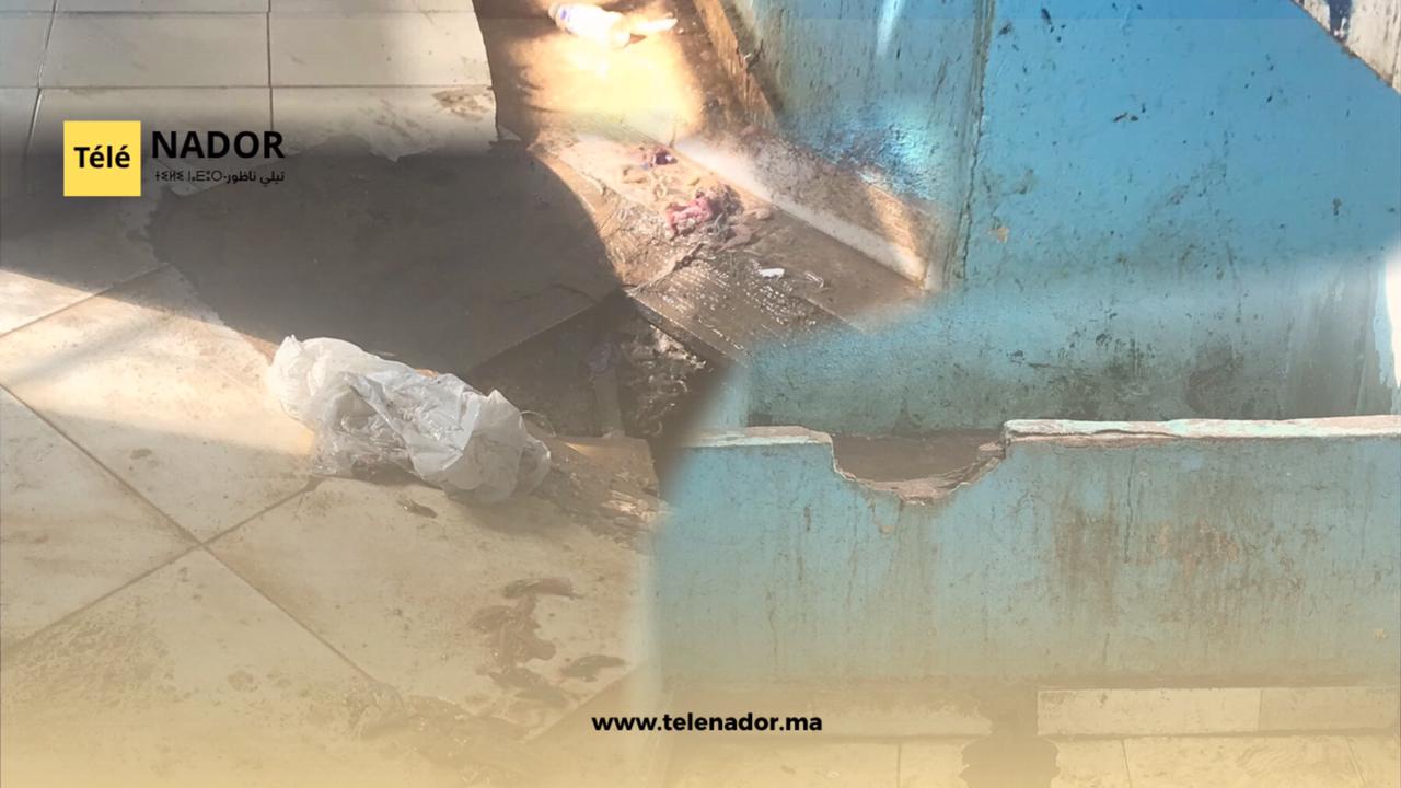 وتُظهر صور حديثة التُقطت من عين المكان حالة كارثية، حيث تنتشر المياه الملوثة وبقايا الأسماك والنفايات المنزلية على الأرض، في مشهد يُسيء للمنظر العام ويعكس تهاون الجهات المعنية في صيانة هذا المرفق الحيوي.