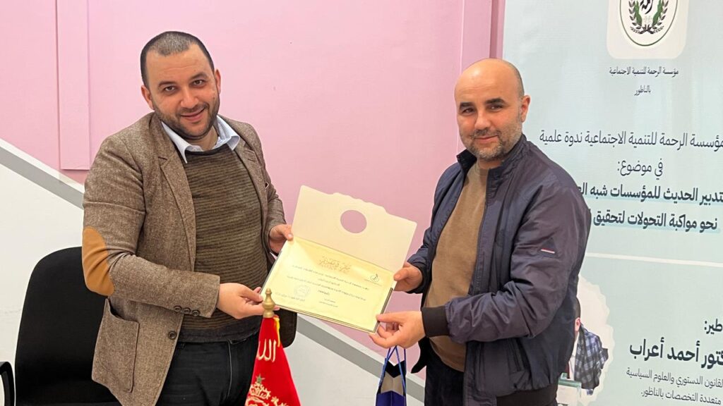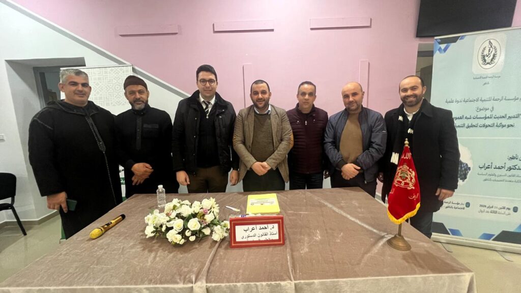 احتضنت مؤسسة الرحمة للتنمية الاجتماعية ندوة علمية متميزة حول موضوع: “التدبير الحديث للمؤسسات شبه العمومية: نحو مواكبة التحولات لتحقيق التنمية”، وذلك يوم الاثنين 16 فبراير 2026 على الساعة الثالثة بعد الزوال، بمقر المؤسسة الكائن بأولاد ميمون بمدينة الناظور، وسط حضور مهتمين بالشأن القانوني والتنموي.