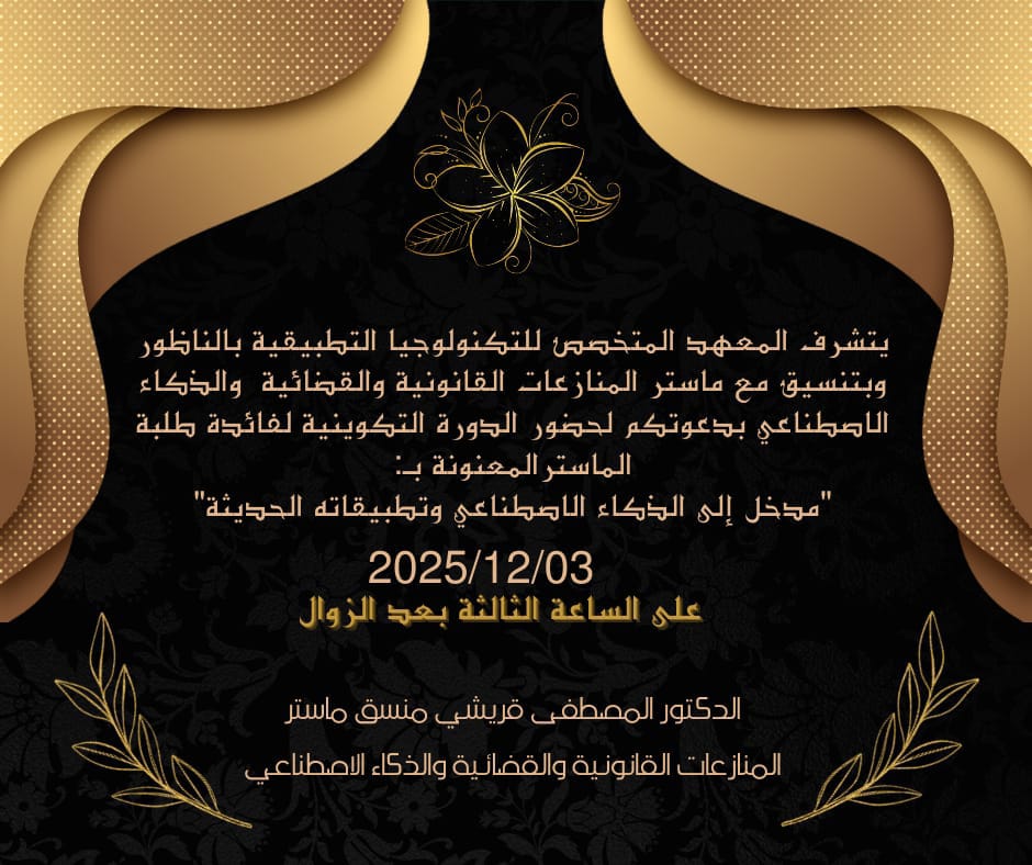 نجح طلبة ماستر المنازعات القانونية والقضائية والذكاء الاصطناعي بكلية متعددة التخصصات بالناظور، يوم الأربعاء 03 دجنبر 2025، في خوض تجربة تكوينية نوعية بالمعهد المتخصص للتكنولوجيا التطبيقية، حيث استفادوا من دورة مكثفة حول «مدخل إلى الذكاء الاصطناعي وتطبيقاته الحديثة» أطرها ببراعة المهندسة والأستاذة أنيسة بلعربي.