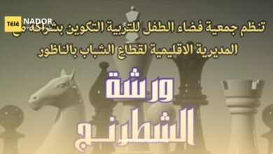 تيلي ناظور : نوال أموسى تنظم جمعية فضاء الطفل للتربية والتكوين، بشراكة مع المديرية الإقليمية لقطاع الشباب بالناظور، ورشة الشطرنج…
