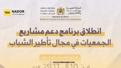 تيلي ناظور : نوال أموسى أعلنت وزارة الشباب عن إطلاق برنامج جديد يهدف إلى دعم مشاريع الجمعيات في مجال تأطير…
