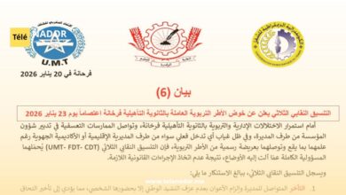 بيان احتجاجي من التنسيق النقابي الثلاثي حول أوضاع ثانوية فرخانة التأهيلية