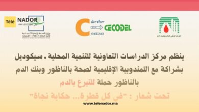 تيلي ناظور : نوال أموسى في إطار تعزيز ثقافة التضامن والتبرع، ينظم مركز الدراسات التعاونية للتنمية المحلية – سيكوديل، بشراكة…