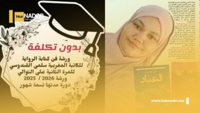 تيلي ناظور : متابعة ورشة مجانية لتعليم فن كتابة الرواية بالمغرب تحت إشراف الكاتبة سلمى القندوسي أُعلن عن فتح باب…