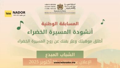 تيلي ناظور : نوال أموسى تخليدا للذكرى الخمسين للمسيرة الخضراء المظفرة، أعلنت وزارة الشباب عن تنظيم مسابقة وطنية في الإبداع…